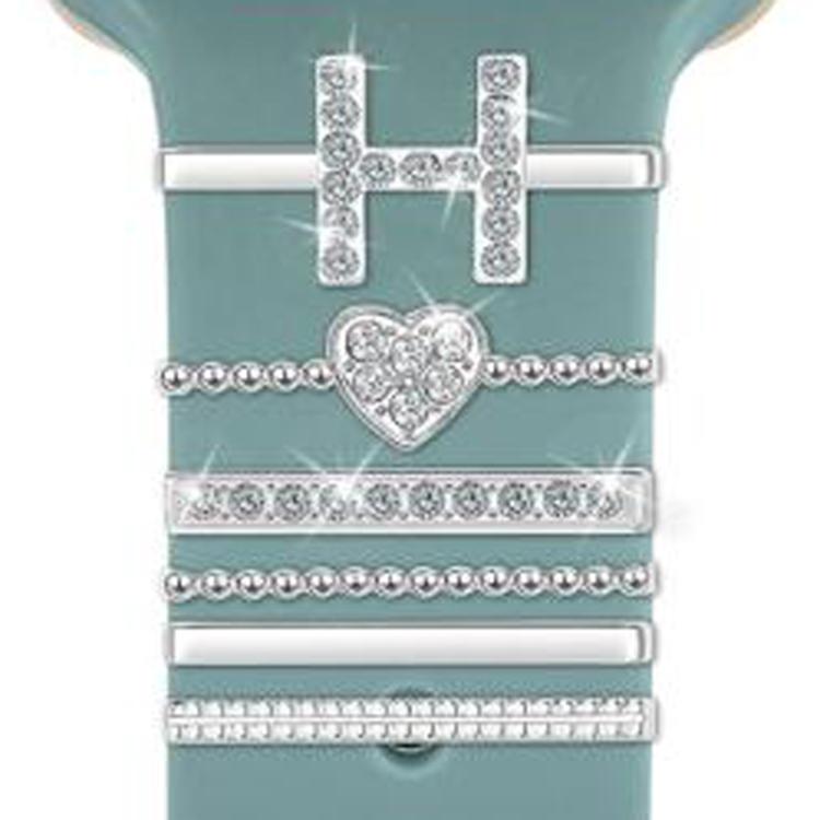 Juego de 6 correas de silicona universales para reloj inteligente, accesorios de metal decorativos, tamaño: H (plata)