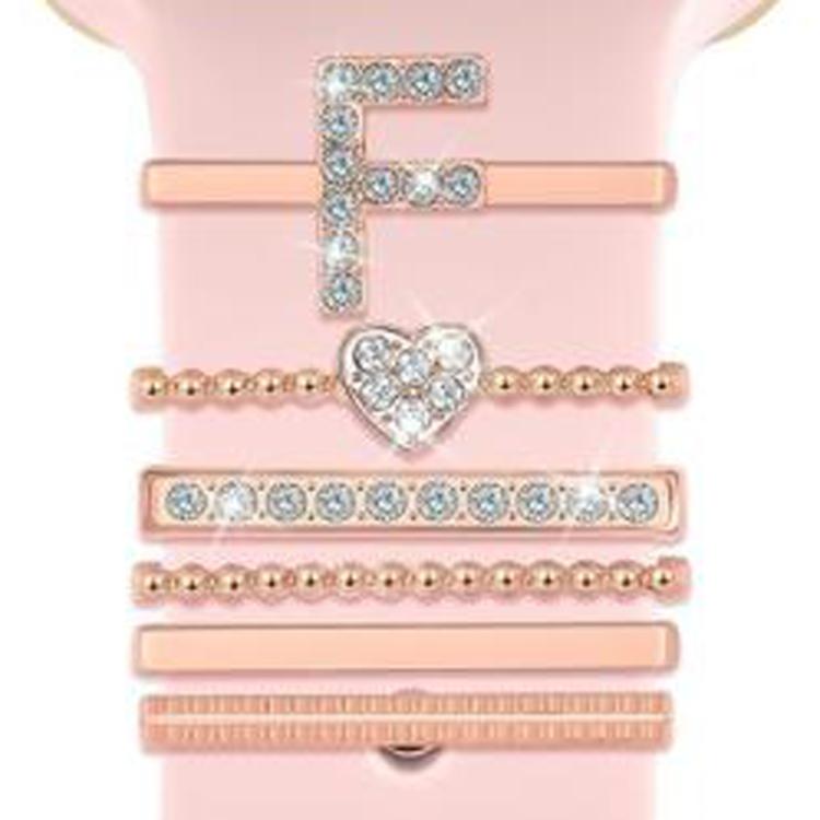 Juego de 6 correas de silicona universales para reloj inteligente, anillos decorativos de metal, talla F (oro rosa)