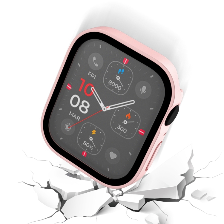 Marco de PC + Estuche Protector Vidrio Templado Life Waterproof 2 En 1 para Apple Watch Series 8/7 45mm (Oro Rosa)