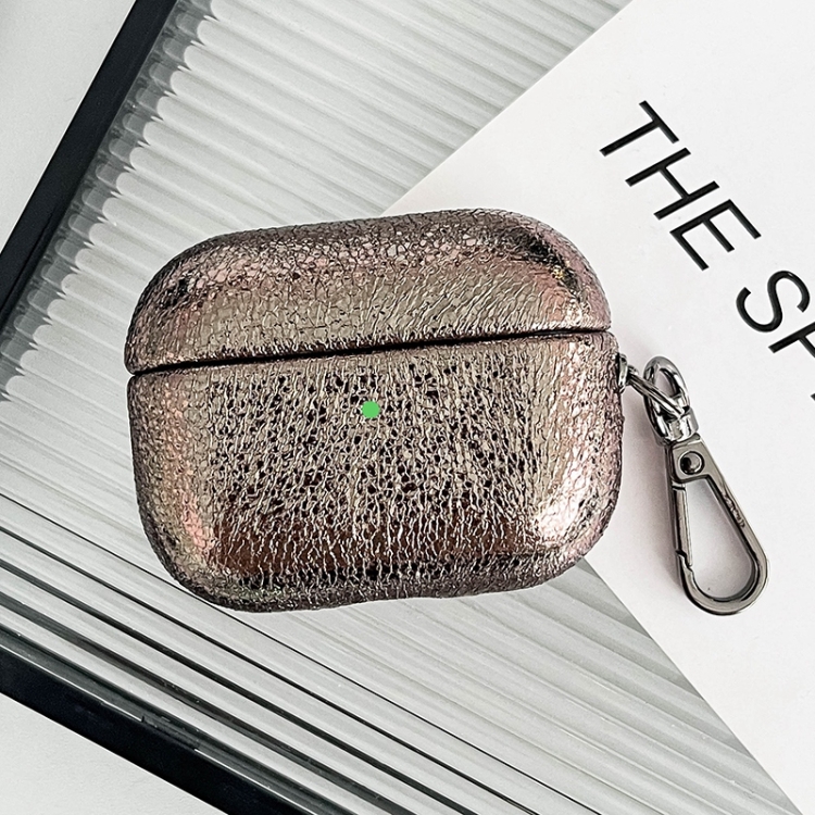 Funda Protectora Para Airpods Pro 2 Auriculares Bluetooth Textura Cuero En Ráfaga (Dorado)
