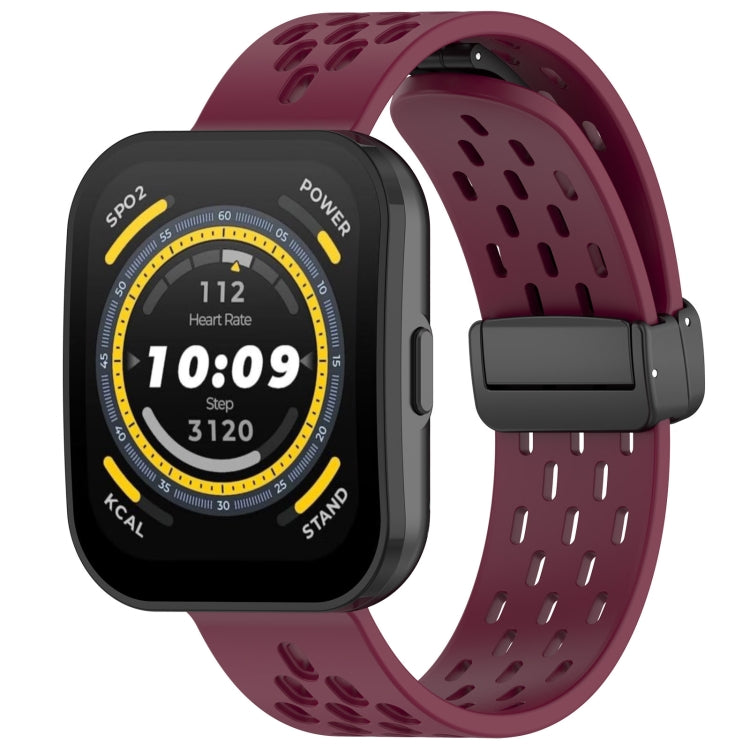Correa de Silicona para Amazfit Bip 5 con Cierre Magnético Plegable (Vino)