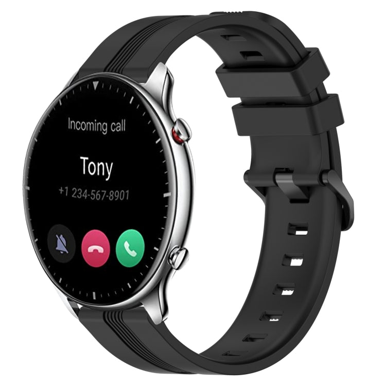 Correa de Reloj Silicona para Amazfit GTR 2 22mm con Rayas Cóncavas (Negro)