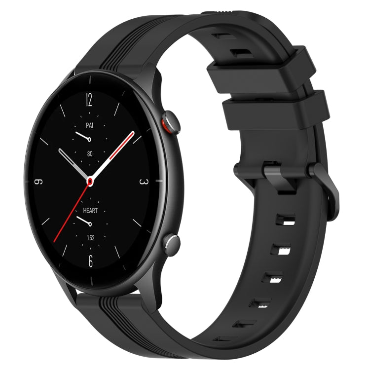 Banda de Reloj de Silicona para Amazfit GTR 2E 22mm con Rayas Cóncavas (Negro)