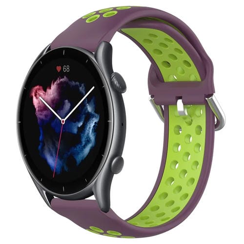 Banda de Reloj Silicona Deportiva para Amazfit GTR 3 Pro 22mm Transpirable (Púrpura + Lima)