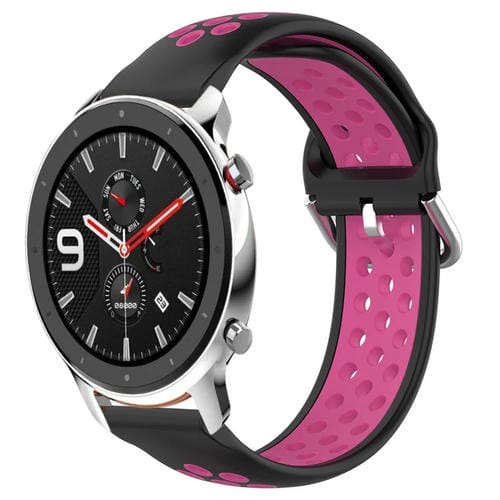 Correa de Reloj Silicona Deportiva para Amazfit GTR 4 22mm Transpirable Perforada (Negro + Rojo Rosa)