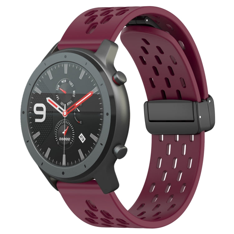 Correa de Reloj Silicona para Amazfit GTR 47mm 22mm con Cierre Magnético Plegable (Borgoña)