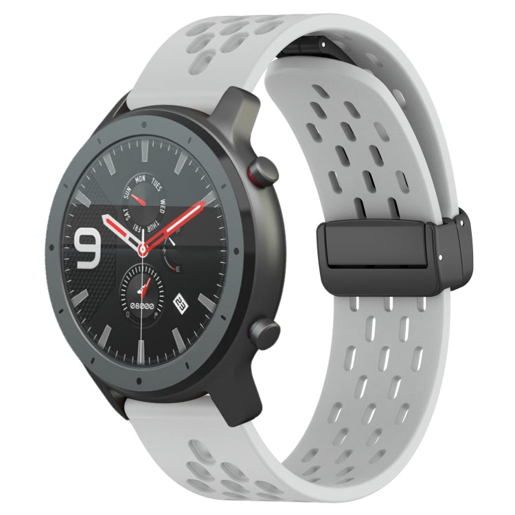 Correa de Silicona para Amazfit GTR 47mm 22mm con Cierre Magnético Plegable (Gris Claro)