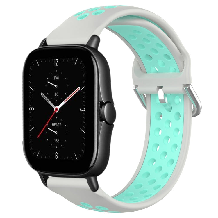 Correa de Reloj de Silicona Deportiva para Amazfit GTS 2E 20mm Transpirable Perforada (Gris + Pato de Agua)