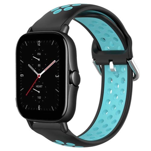 Correa de Reloj Amazfit GTS 2E 20mm Silicona Deportiva Transpirable Perforada (Negro + Azul)