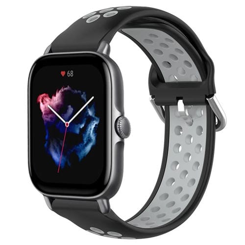 Correa de Reloj 20mm Amazfit GTS 3 silicona deportiva transpirable perforada (Negro + Gris)