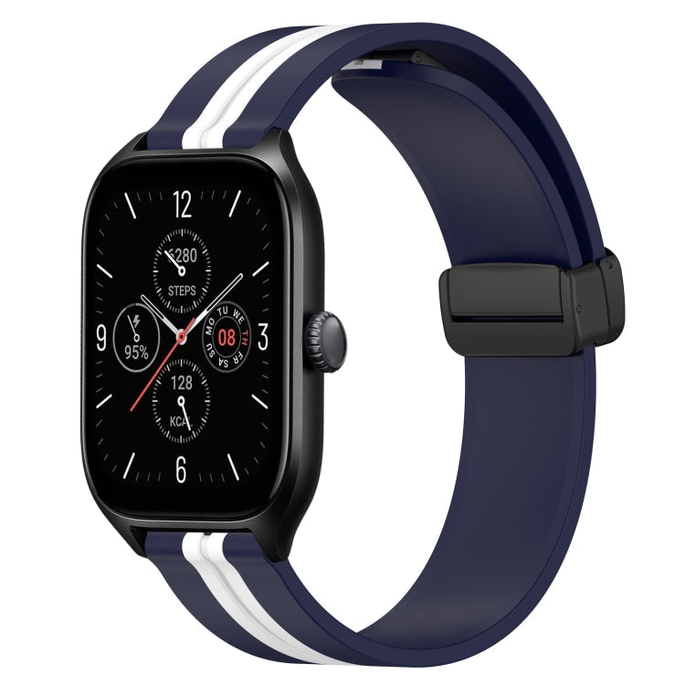 Correa de Reloj Silicona para Amazfit GTS 4 20mm con Cierre Magnético Plegable (Azul Medianoche + Blanco)