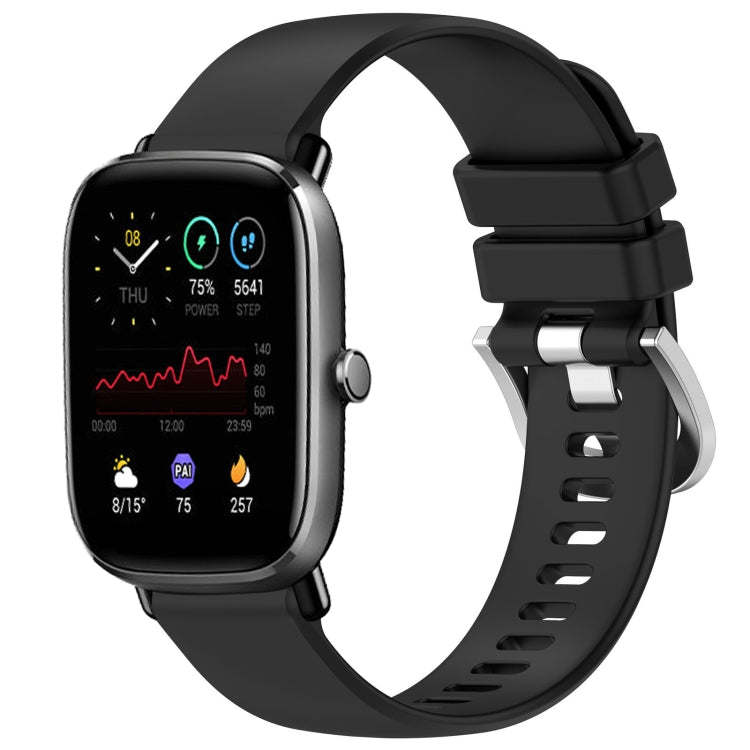 Correa de Silicona para Amazfit Gts4 Mini con Hebilla Plateada Líquida Brillante 20mm (Negro)