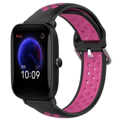 Correa de Reloj Amazfit Pop 20mm Silicona Deportiva Transpirable Perforada (Negro + Rojo Rosa)