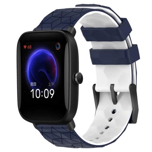 Banda de Reloj Silicona para Amazfit Pop 20mm Textura de Fútbol (Azul Medianoche + Blanco)