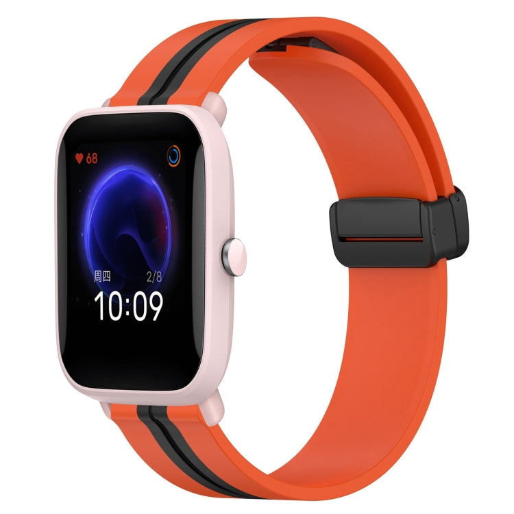 Correa de Reloj Silicona para Amazfit Pop Pro 20mm con Cierre Magnético Plegable (Naranja + Negro)