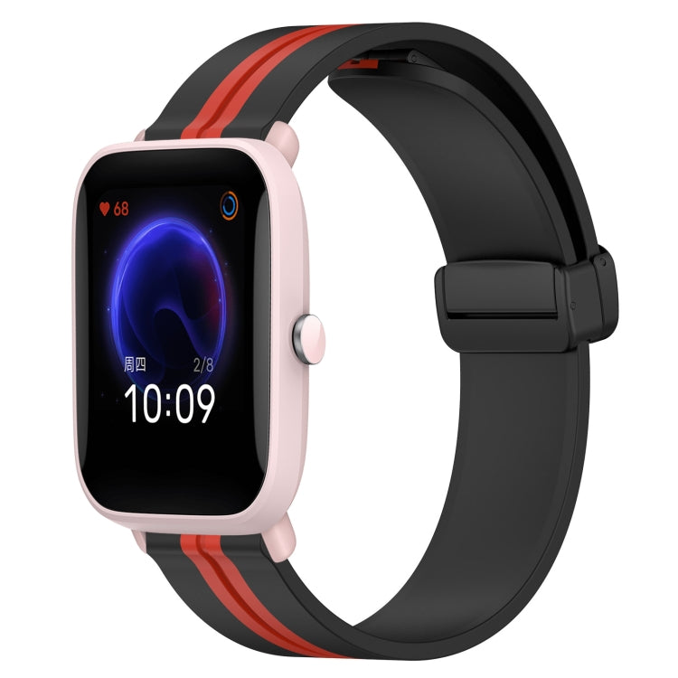 Correa de Reloj para Amazfit Pop Pro 20mm Silicona con Cierre Magnético Plegable (Negro + Rojo)