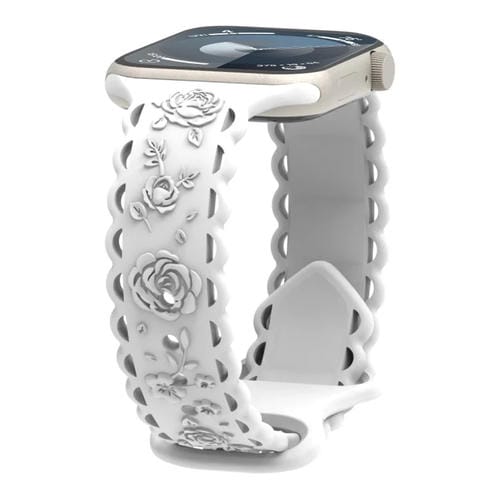 Correa de Silicona para Apple Watch Se 2022 con Relieve de Rosa 3D y Encaje 44mm (Blanco)