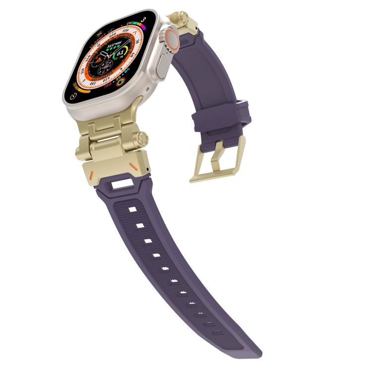 Correa de Reloj para Apple Watch Se 2023 de TPU con Conector de Acero Inoxidable 44mm (Dorado Morado)