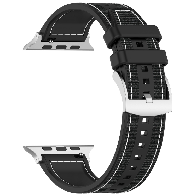 Correa de Reloj para Apple Watch Series 2 Silicona y Nailon Híbrido con Hebilla Oficial 38mm (Negro)