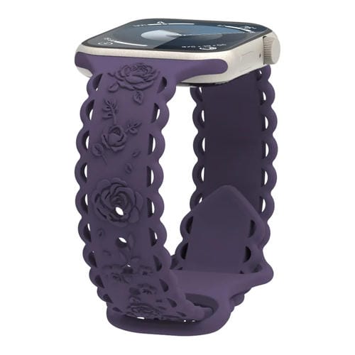 Correa de Silicona para Apple Watch Series 4 con Relieve de Rosa 3D y Encaje 44mm (Cereza Carmesí)