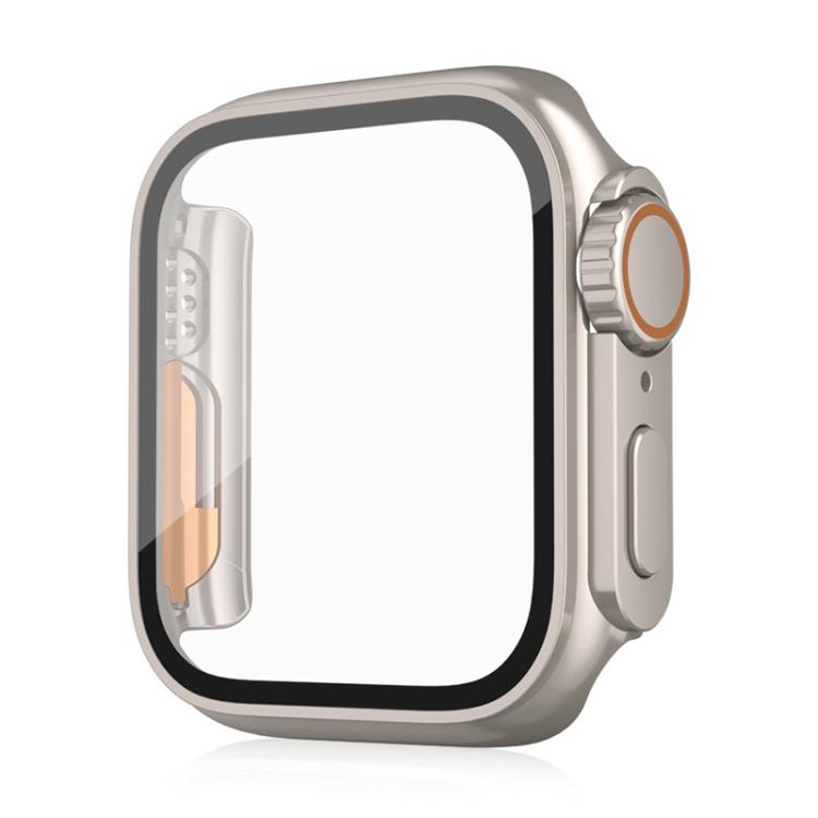 Para Apple Watch Series 6/5/4/SE de 40 mm xDfind: cambia a Ultra de 49 mm con película de vidrio templado y cubierta de PC integrada (titanio y naranja)