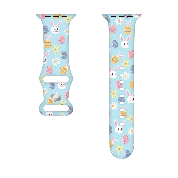 Correa para Apple Watch Series 9 de Silicona con Estampado de Pascua y Hebilla de Mariposa de 45mm (Huevos de Pascua Azules)
