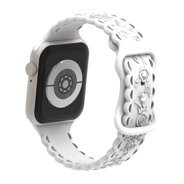 Correa de Silicona para Apple Watch Series 9 41mm con Relieve de Rosa 3D (Blanco)
