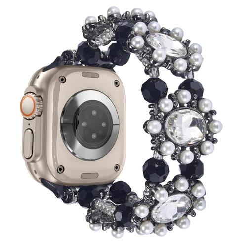 Correa para Apple Watch Ultra 2 Pulsera de Piedras Preciosas y Perlas con Cuentas 49mm (Negro)