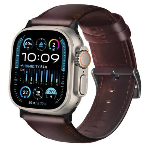 Correa de Reloj para Apple Watch Ultra 49mm Cuero Genuino con Cera de Aceite (Rojo Marrón)