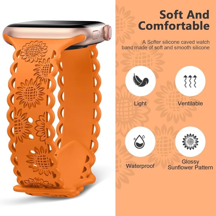 Correa de Silicona para Apple Watch Ultra 49mm con Relieve de Girasol y Encaje (Naranja)