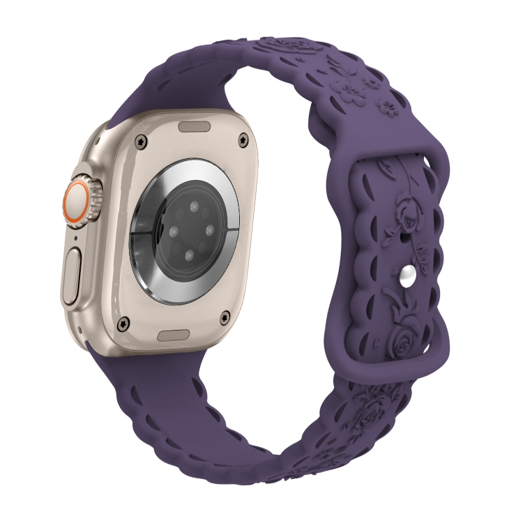 Correa de Silicona para Apple Watch Ultra 49mm con Relieve de Rosa 3D y Encaje (Cereza Carmesí)