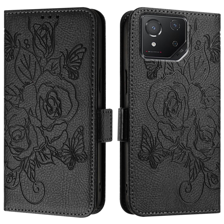 Funda de Cuero Antirrobo RFID para Asus Rog Phone 8 y 8 Pro con Relieve Rosa (Negro)