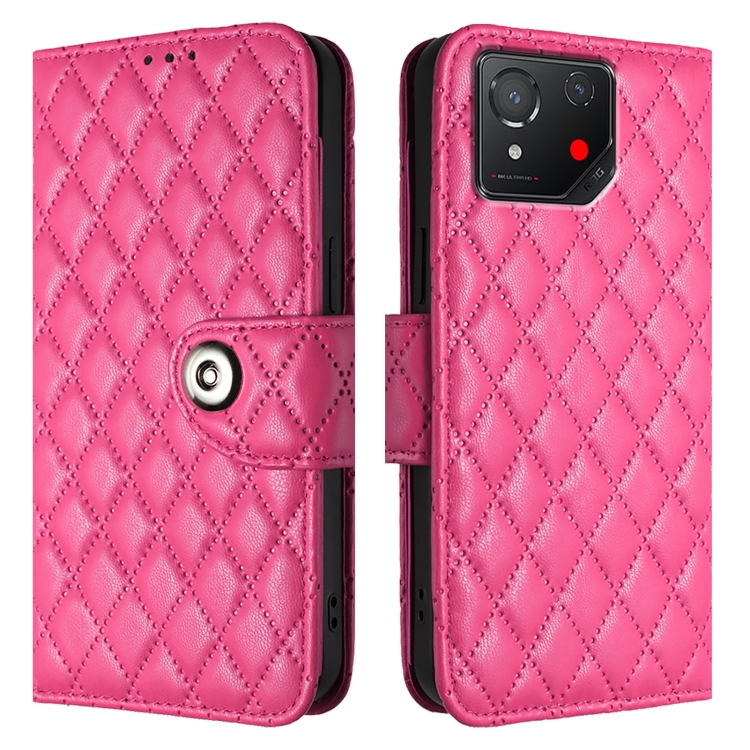 Funda para Asus Rog Phone 8 con Tapa de Cuero Textura Rómbica y Cordón (Rojo Rosa)