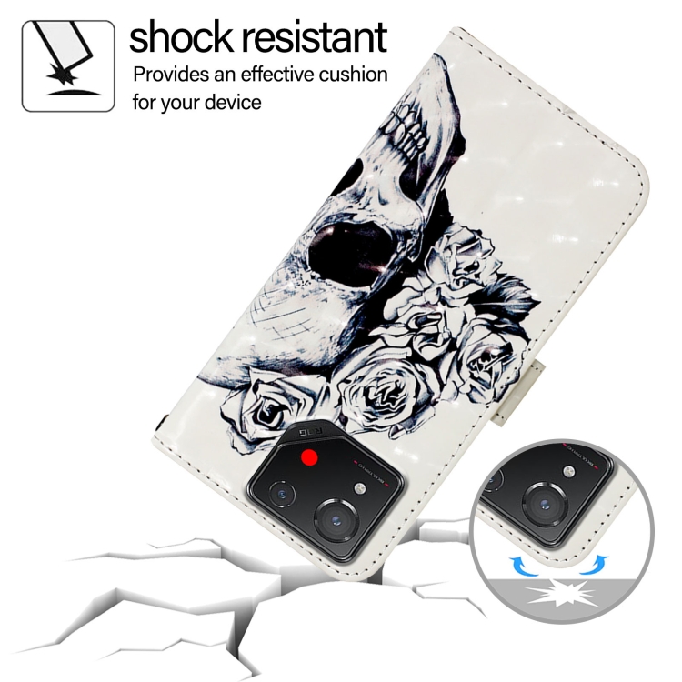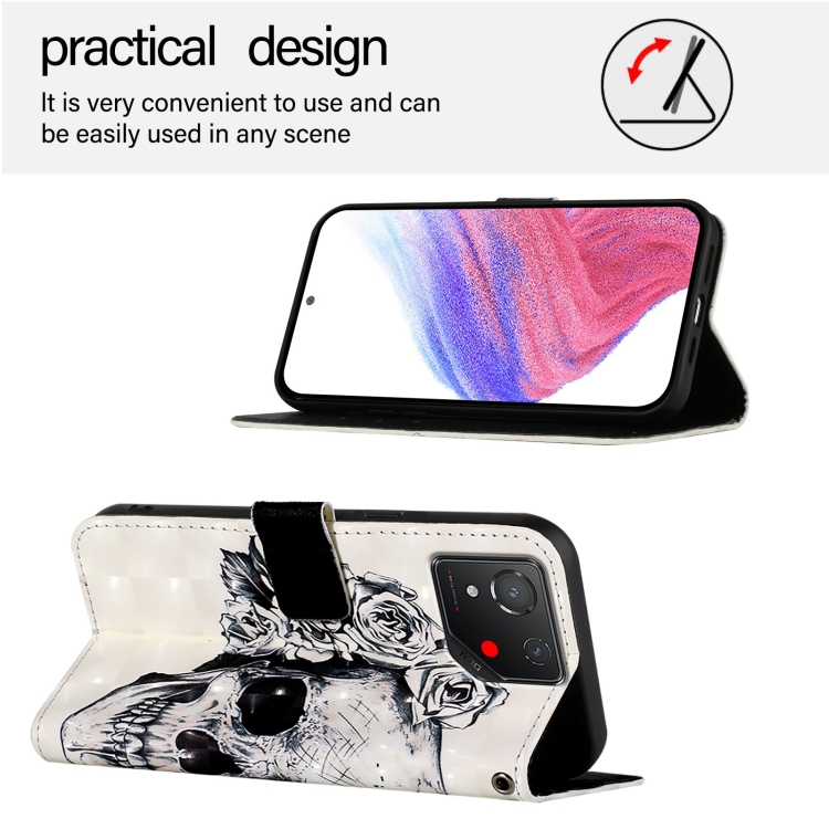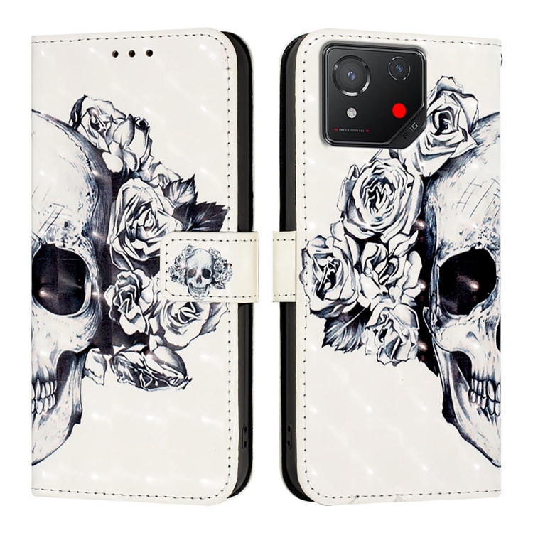 Funda de Cuero para Asus Rog Phone 8 con Tapa Horizontal y Pintura 3D (Calavera)