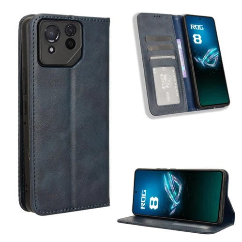 Funda para Asus Rog Phone 8 Pro de Cuero con Textura Retro y Hebilla Magnética (Azul)