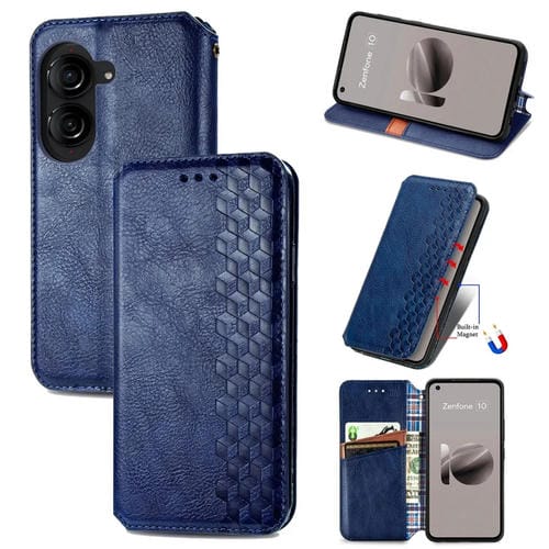 Funda de Cuero Magnético Prensado para Asus Zenfone 10 Cubic Grid (Azul)
