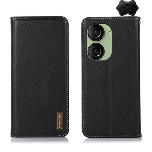 Funda de Cuero de Vaca Khazneh Nappa para Asus Zenfone 10 y Zenfone 9 (Negro)