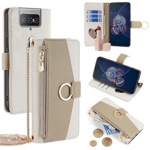 Funda para Asus Zenfone 8 Flip Zs672Ks de Cuero con Textura Litchi Cruzada (Blanco)