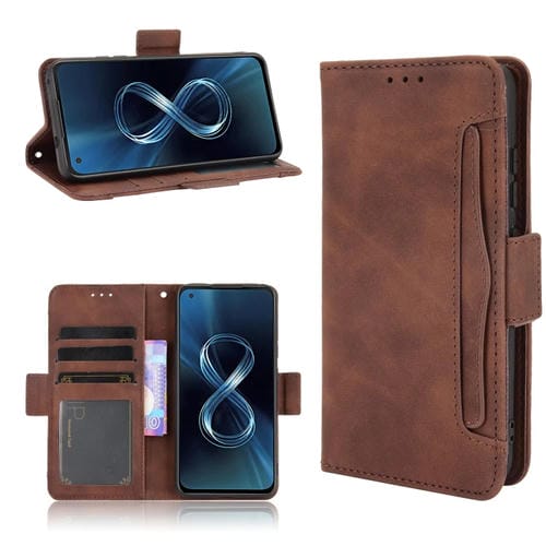 Funda de Cuero Horizontal para Asus Zenfone 8 ZS590KS con Soporte y Ranuras para Tarjetas (Marrón)