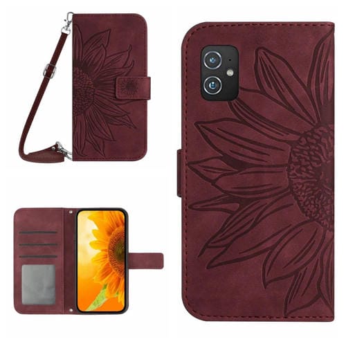 Funda Flip de Cuero para Asus Zenfone 8 Zs590Ks con Cordón y Diseño Sun Flower (Rojo Vino)