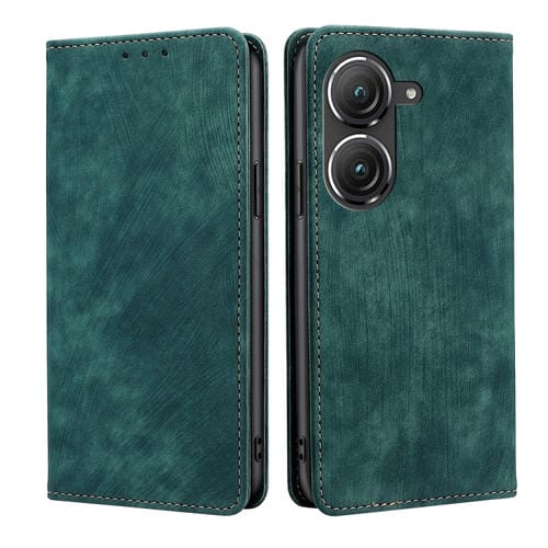 Funda de Cuero Magnética para Asus Zenfone 9 con Protección RFID y Cepillo Antirrobo (Verde)