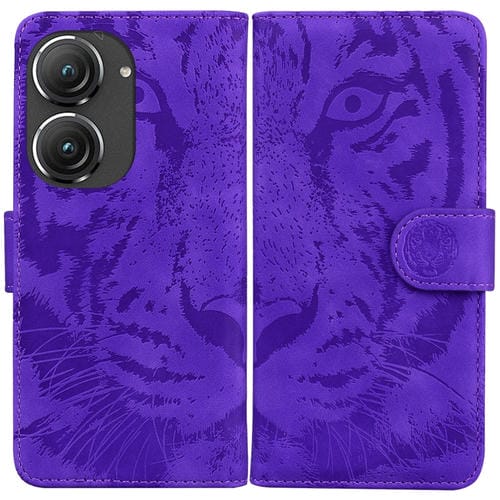 Funda de Cuero Flip para Asus Zenfone 9 Tiger con Patrón Embossing (Púrpura)