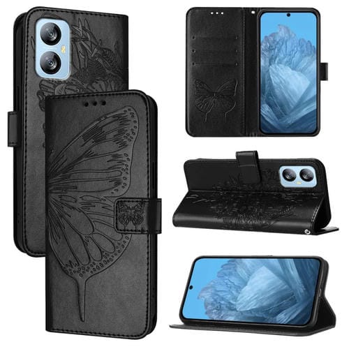 Funda de Cuero para BlackView A52 con Mariposa en Relieve (Negro)