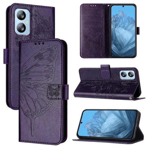 Funda de Cuero para BlackView A52 con Mariposa en Relieve (Púrpura Oscuro)