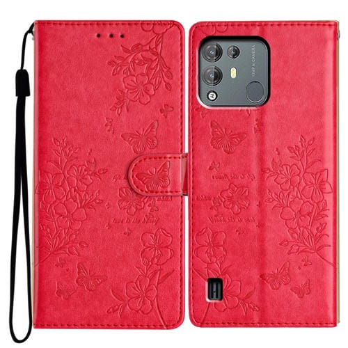 Funda de Cuero BlackView A55 Pro Butterfly Love Flower en Relieve (Rojo)