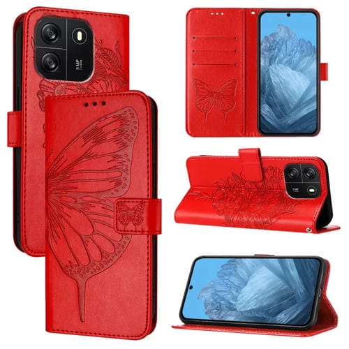Funda de Cuero para BlackView Wave 6C con Mariposa en Relieve (Rojo)