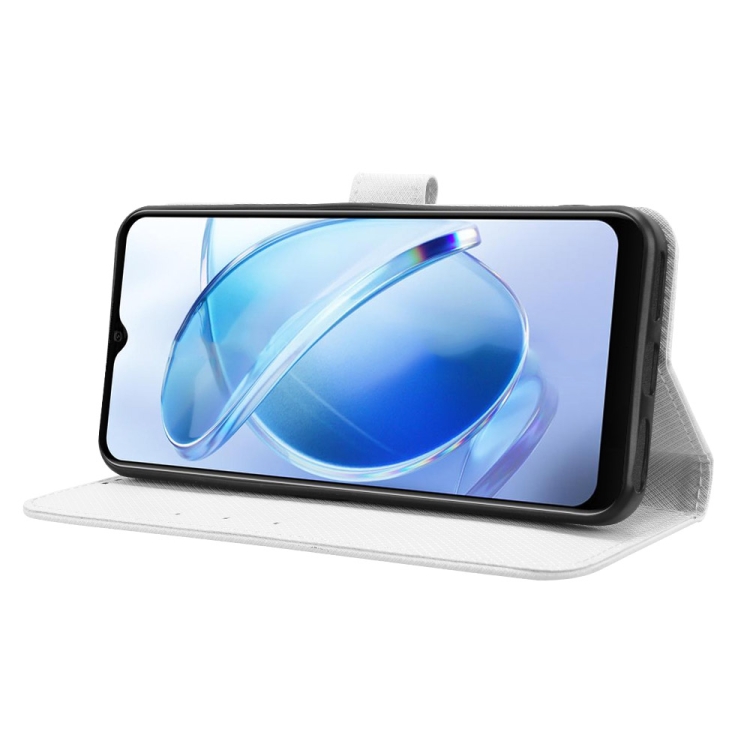 Funda de Cuero para BLU G53 con Textura de Diamante (Blanco)