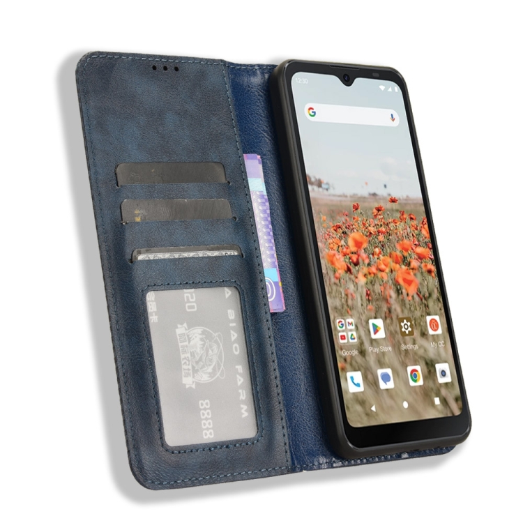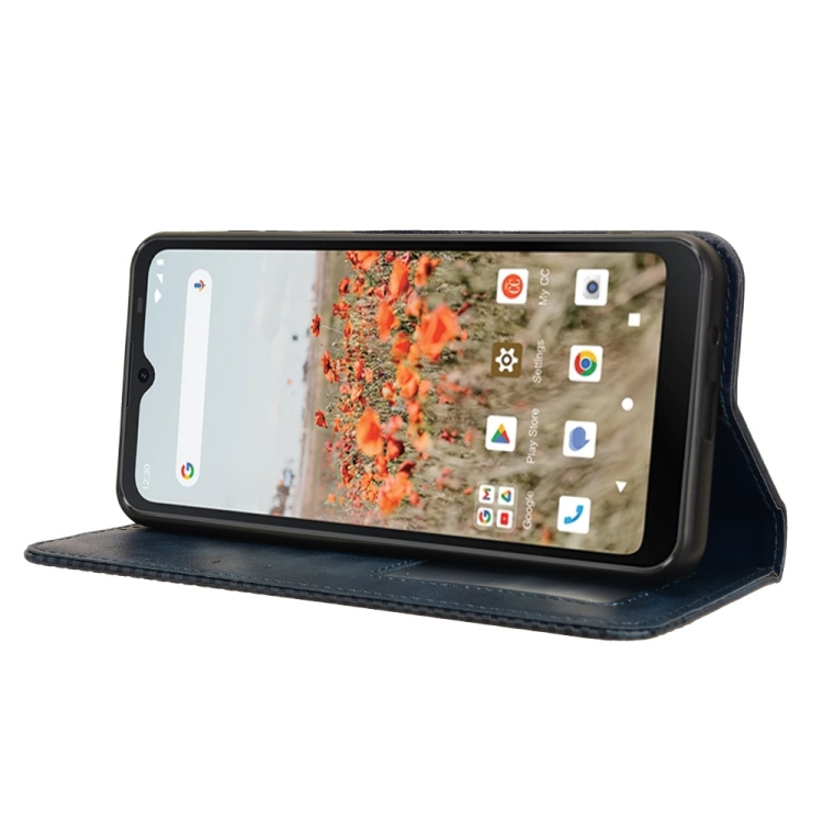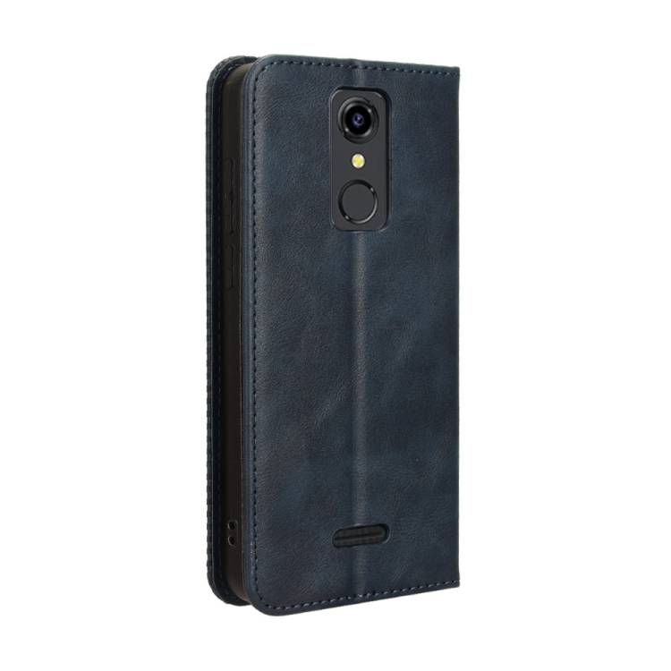 Funda para Teléfono Consumer Cellular Iris Connect Cuero Textura Retro con Hebilla Magnética (Azul)