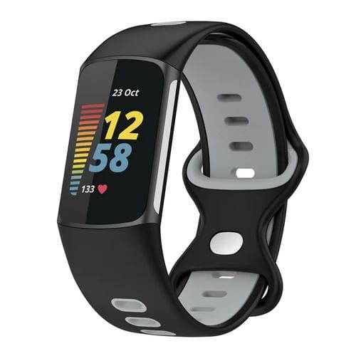 Banda de Silicona para Fitbit Charge 5 Smart Watch Sports Bicolor Impermeable (Negro Gris)