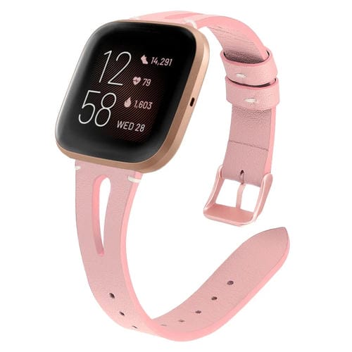 For Fitbit Versa 2 Leather Half Opening Watch Band(Pink)